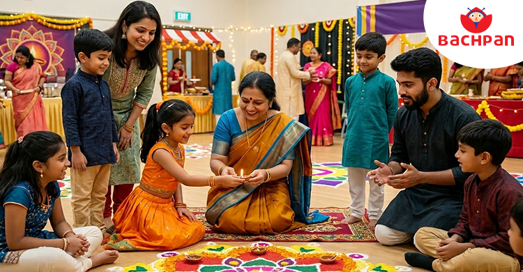 You can organise turn-based dance, crafts, or singing sessions, and assign small responsibilities like holding diyas, passing materials, or leading a song. This way, every child feels included, builds confidence, and stays actively involved in the celebration.